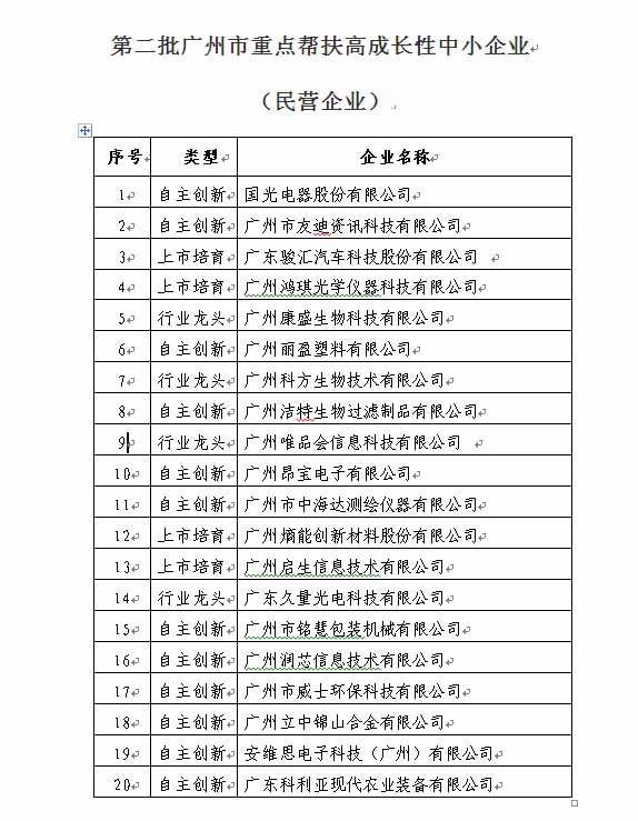 第二批廣州市重點(diǎn)幫扶高成長(zhǎng)性中小企業(yè)(民營(yíng)企業(yè))名單2