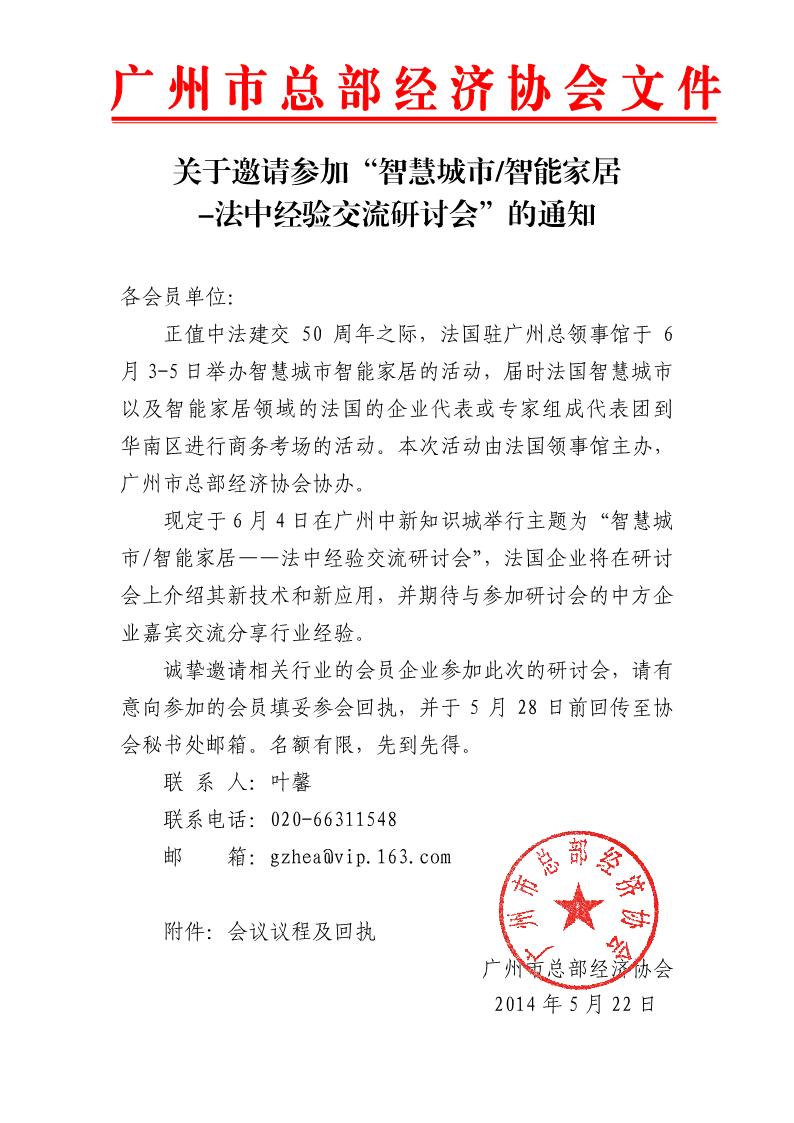 關(guān)于邀請參加“智慧城市/只能家居-法中經(jīng)驗交流研討會”的通知