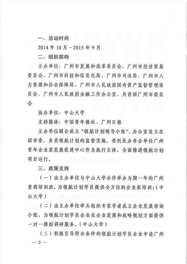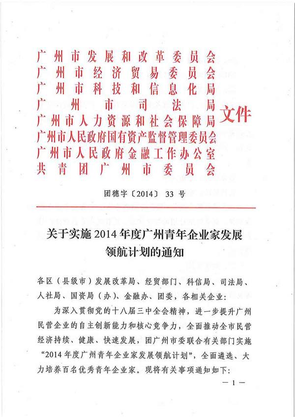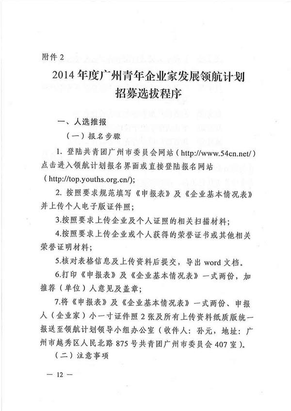 關(guān)于實(shí)施2014年度廣州青年企業(yè)家發(fā)展領(lǐng)航計(jì)劃的通知