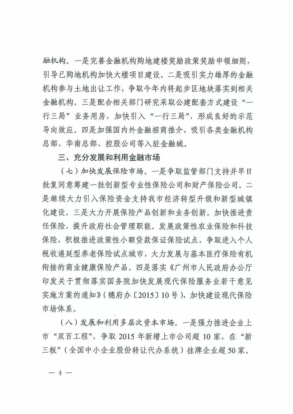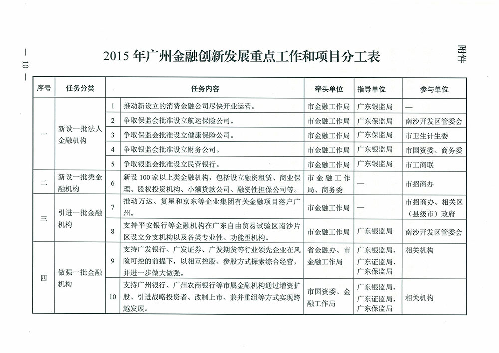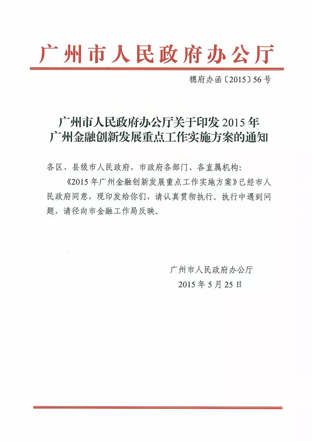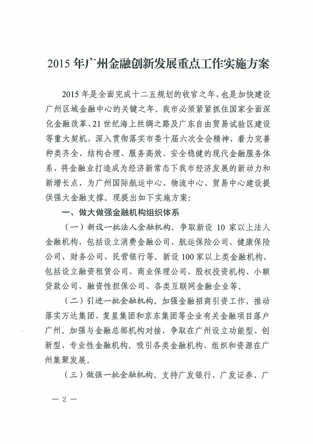 關(guān)于印發(fā)2015年廣州金融創(chuàng)新發(fā)展重點工作實施方案的通知