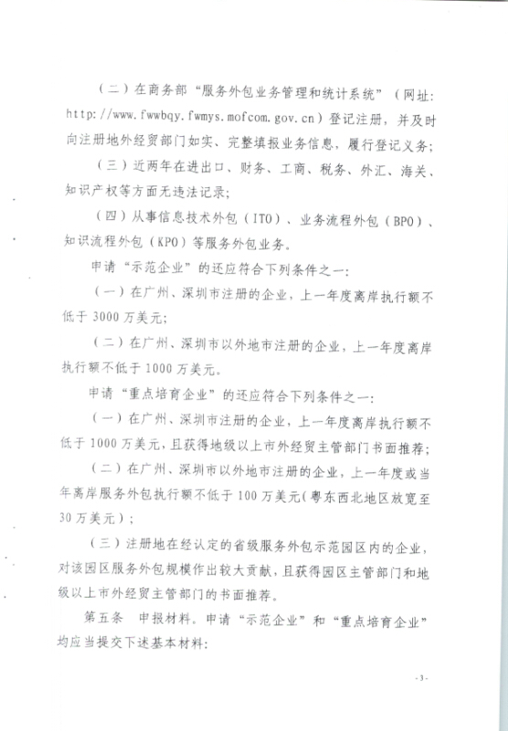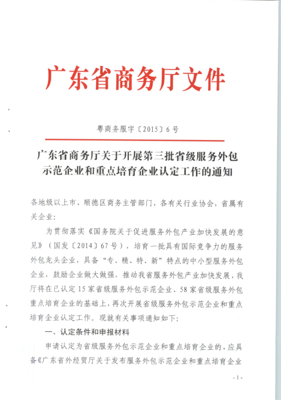 關(guān)于開展第三批省級(jí)服務(wù)外包示范企業(yè)和重點(diǎn)培育企業(yè)認(rèn)定工作的通知