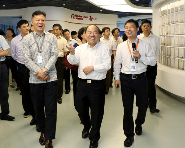 UC的匯報從戰(zhàn)略格局、創(chuàng)新發(fā)展、國際化視野、產(chǎn)業(yè)環(huán)境和企業(yè)文化建設四個方面,介紹了創(chuàng)業(yè)史和“阿里大文娛板塊”的規(guī)劃。寧吉喆局長對UC的發(fā)展和愿景表示了高度的認可,并認為UC能夠連續(xù)保持高速增長,在經(jīng)濟新常態(tài)下難能可貴,UC的高研發(fā)投入是對創(chuàng)新驅(qū)動發(fā)展最好的詮釋。當聽到UC員工的平均年齡才29歲,“80后當總經(jīng)理,90后當總監(jiān)”,寧吉喆局長稱贊道年輕和活力才是移動互聯(lián)網(wǎng)的主題。