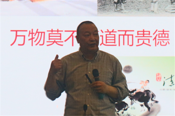 主講人黃老師以道家文化為關(guān)鍵詞,從道家思想的文化基礎(chǔ)、道家文化的核心思想、道家文化與企業(yè)管理、道家文化與攝生養(yǎng)心四個方面展開課程。講座過程中,黃老師摘取《道德經(jīng)》關(guān)鍵語句,結(jié)合時下熱門話題,各類短小而生動的生活實(shí)例信手拈來,經(jīng)典古文與網(wǎng)絡(luò)語言自由切換,深入淺出地闡述了道家文化,引得現(xiàn)場掌聲連連,爆笑不斷。