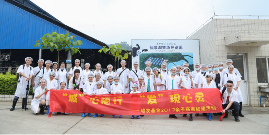 廣州市啟聰學(xué)校家庭和城發(fā)基金家庭于仙泉湖牧場入口處合影