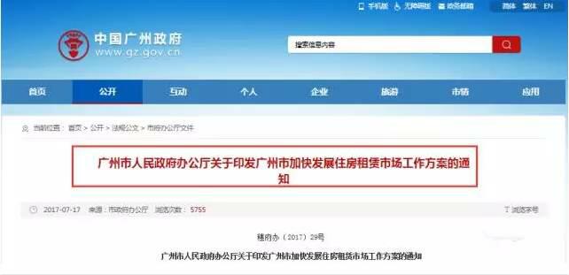 7月17號,在廣州市政府官網(wǎng)上,赫然發(fā)布了一個(gè)通知,即《關(guān)于印發(fā)廣州市加快發(fā)展住房租賃市場工作方案的通知》。