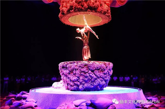 《天釀》由利亞德集團勵豐文化創(chuàng)意策劃并投資運營,以茅臺千年醬酒文化為主題,采用聲光電,全息投影等現(xiàn)代高科技技術(shù),演繹以酒為媒的傳奇故事。在天釀景區(qū)工作人員引導(dǎo)下,投資者們漸次進入“天賜”、“天遇”、“天路”、 “天啟”、“天宴”五級空間。通過75分鐘的行進式觀演,在震撼的國酒文化之旅中,領(lǐng)略山水自然、品鑒恒古匠心、感悟人生百味。