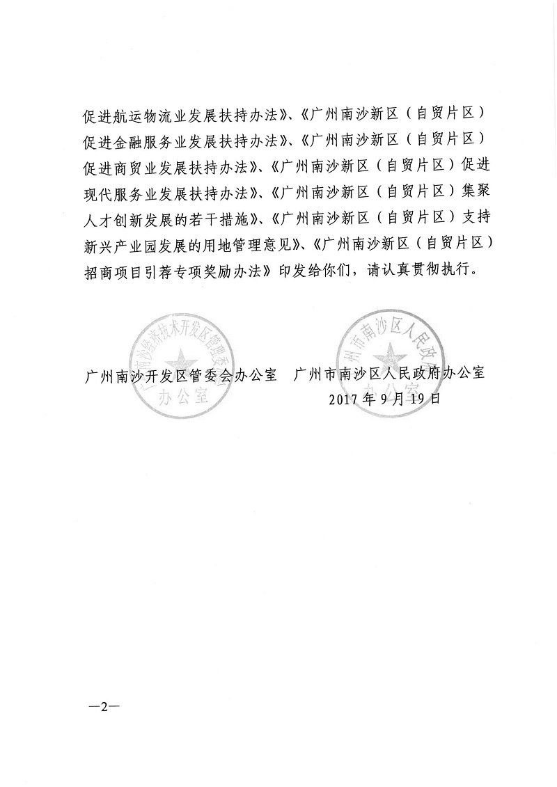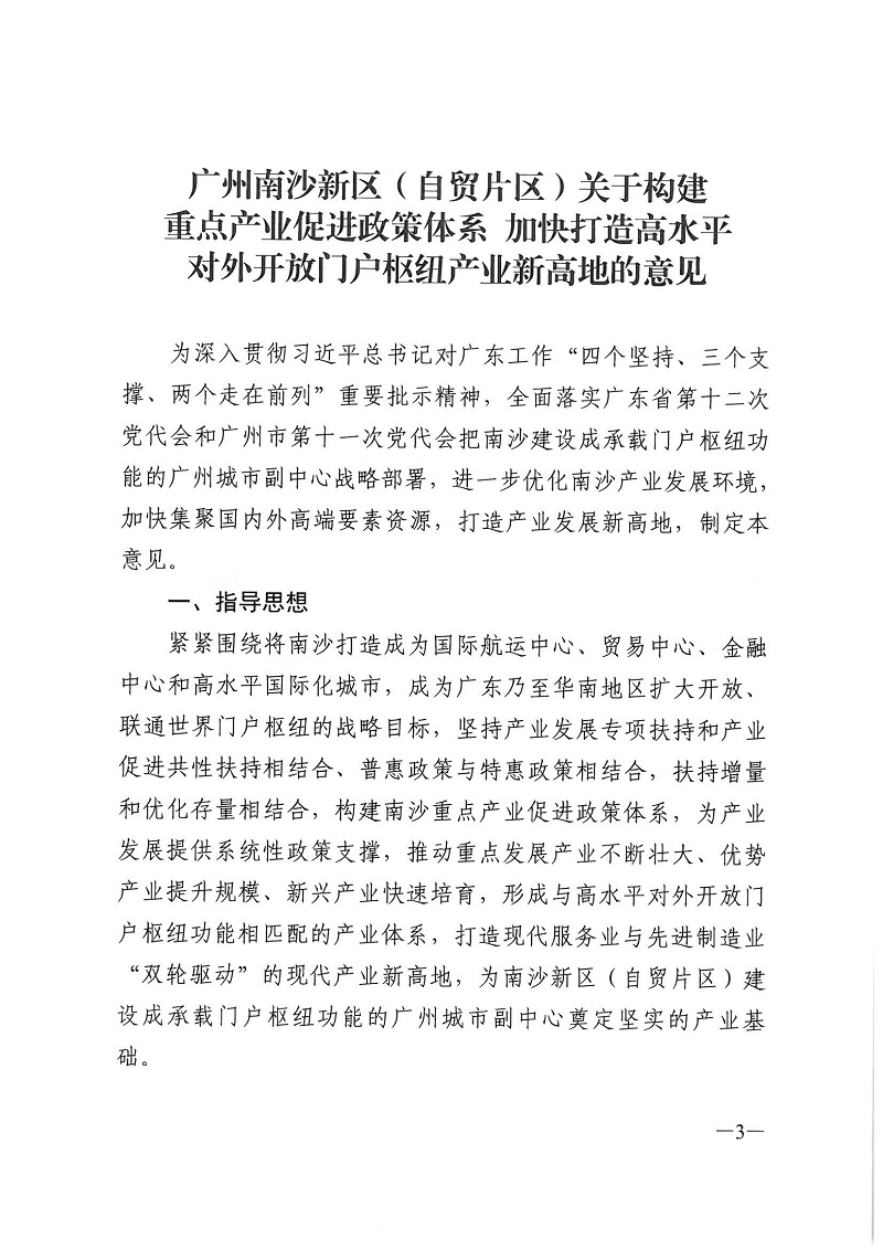 廣州南沙經(jīng)濟(jì)技術(shù)開(kāi)發(fā)區(qū)管理委員會(huì)辦公室 廣州市南沙區(qū)人民政府辦公室關(guān)于印發(fā)“1+1+10”產(chǎn)業(yè)政策體系文件的通知