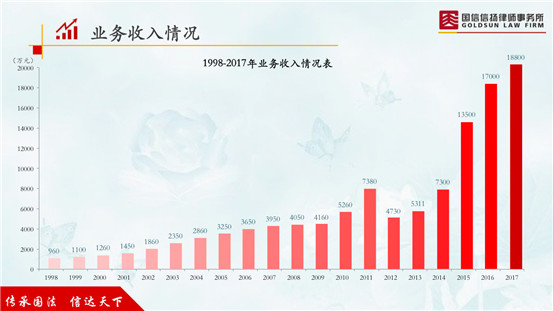 從1998年成立至今,國信信揚所歷經(jīng)二十載春秋,從始創(chuàng)期15名律師發(fā)展到現(xiàn)在擁有十家分所(河源、南沙、江門、深圳、汕頭、東莞、成都、花都八家分所以及前海、南沙兩家聯(lián)營所)和332名律師的大型綜合性律師事務(wù)所,2015、2016、2017連續(xù)三年創(chuàng)收過億元并每年增長超過20%以上,綜合實力位列廣東律師行業(yè)前茅。