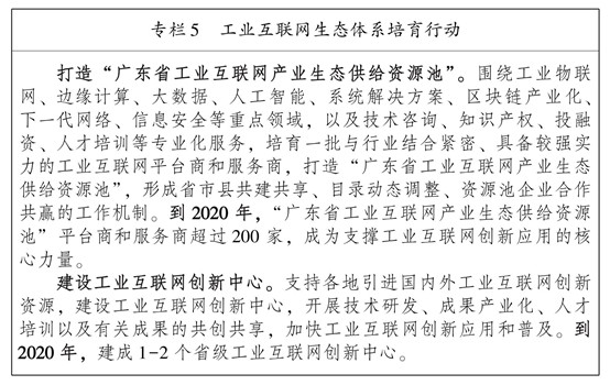 內(nèi)容:支持工業(yè)互聯(lián)網(wǎng)平臺商和服務(wù)商,針對工業(yè)企業(yè)數(shù)字化、網(wǎng)絡(luò)化、智能化升級需求,開發(fā)一批低成本、快部署的工業(yè)互聯(lián)網(wǎng)應(yīng)用服務(wù)產(chǎn)品,構(gòu)建面向工業(yè)應(yīng)用場景、包括數(shù)據(jù)采集、平臺服務(wù)和應(yīng)用服務(wù)等產(chǎn)業(yè)體系的廣東工業(yè)互聯(lián)網(wǎng)產(chǎn)業(yè)生態(tài)。