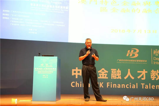 為深入學習貫徹廣東省委十二屆四次全會精神,踐行“四個走在全國前列”,深刻領會全會提出的“以粵港澳大灣區(qū)建設為重點,加快形成全面開放新格局”的工作要求,使廣州地區(qū)金融高管認清粵港澳大灣區(qū)金融合作中面臨的機遇和挑戰(zhàn),有效擴大粵港澳金融合作領域,推進大灣區(qū)金融發(fā)展,7月13日,由廣州市天河中央商務區(qū)管委會和英國國際貿易部聯(lián)合主辦,廣州市總部經(jīng)濟協(xié)會支持的“中英金融人才教育培訓——粵港澳大灣區(qū)金融合作發(fā)展專題”在廣州珠江城國際會議中心舉行。