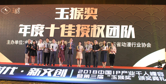 8月24日下午,由中國IP產(chǎn)業(yè)年會組委會主辦的“2018中國IP產(chǎn)業(yè)千人峰會暨第三屆玉猴獎頒獎典禮”在眾多IP動漫授權(quán)業(yè)內(nèi)專業(yè)人士的共同見證下在深圳會展中心完美落幕。歷經(jīng)1個月的網(wǎng)上投票和專家評審,詠聲動漫和旗下動漫品牌《豬豬俠》在眾多參評公司及品牌中脫穎而出,斬獲了“2018年度十佳授權(quán)團隊” 、“2018年度最具商業(yè)價值十大動漫IP”兩項大獎!