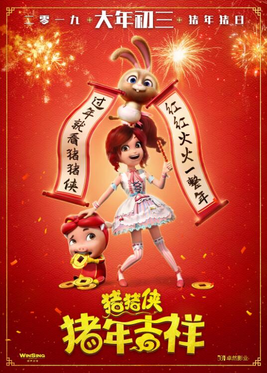 動(dòng)畫電影《豬豬俠·豬年吉祥》由廣東詠聲動(dòng)漫股份有限公司、北京卓然影業(yè)有限公司出品,2019大年初三,豬年就看豬豬俠,紅紅火火一整年。