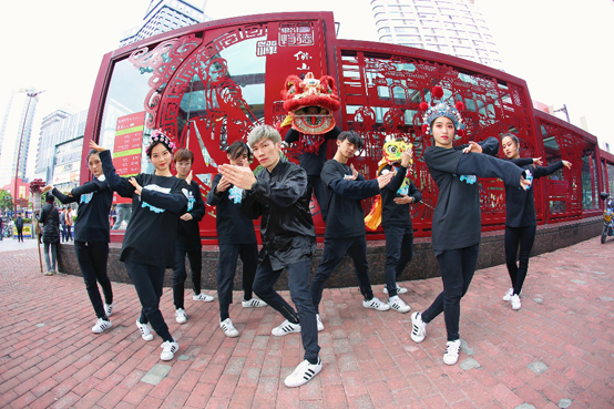 餐廳內(nèi)大家還沉浸在歡快的打銅中,餐廳外的祖廟地鐵站口,來往的行人被一場文化快閃吸引。只見原“隱藏”在行人中的街舞潮人們,在音樂響起后將廣佛人熟悉的功夫、粵劇都融入在舞步中,與市民一起上演了粵文化舞蹈秀。在場的年輕人紛紛表示,這樣很粵潮!