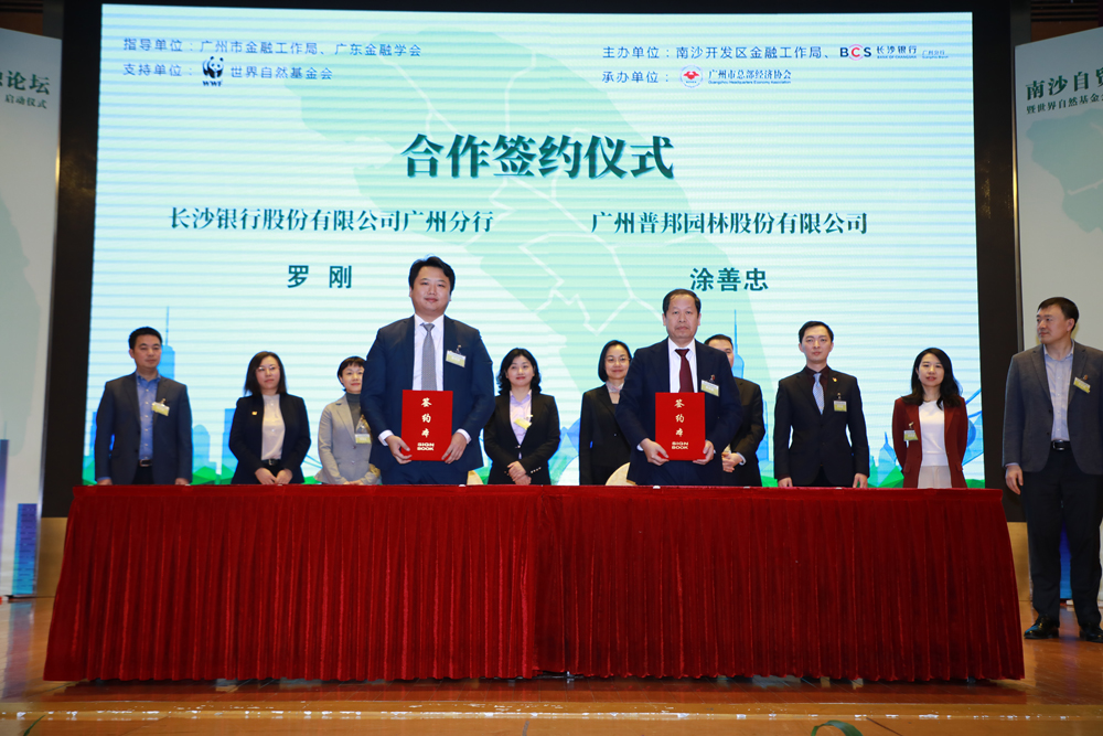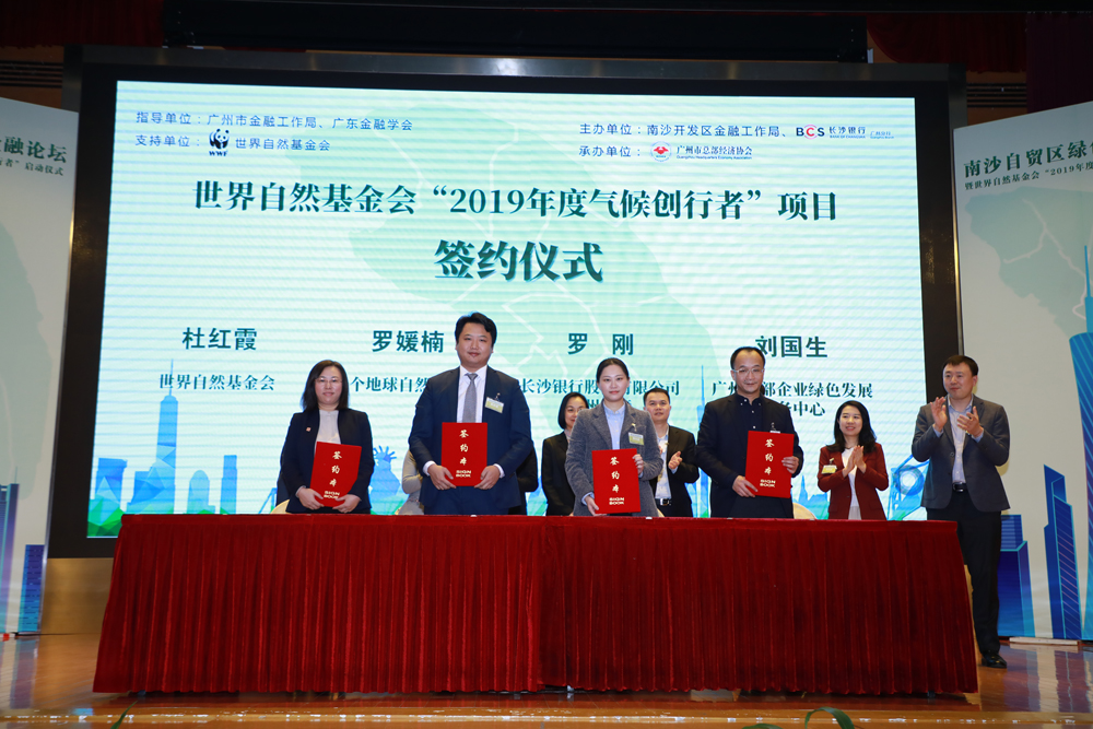 第三個簽約由世界自然基金金會、一個地球自然基金金會、長沙銀行行股份有限公司南沙分行。