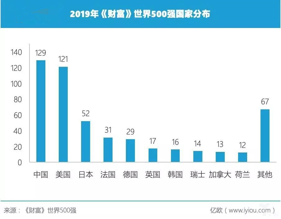 此次從數(shù)量上看,世界最大的500家企業(yè)中,有129家來自中國,歷史上首次超過美國(121家)。