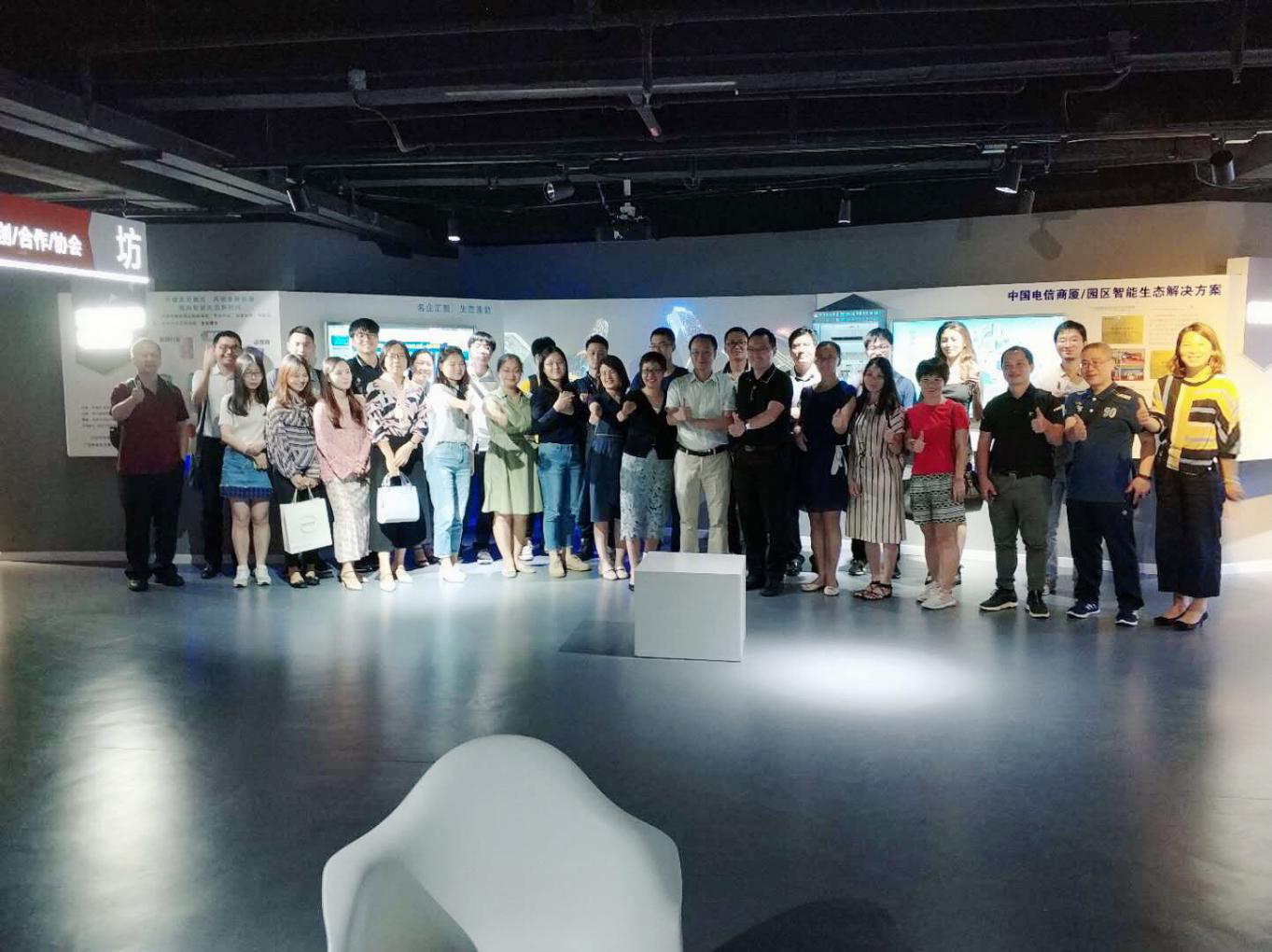 7月25日,由廣州市總部經(jīng)濟協(xié)會聯(lián)合廣州服務貿易與服務外包行業(yè)協(xié)會共同舉辦了第69期敏思學習俱樂部活動--走進中國電信“互聯(lián)網(wǎng)+生態(tài)基地”參觀交流活動。來自中化石油、珠江實業(yè)、廣州羊城通、廣州產(chǎn)投、仁孚汽車、日立電梯電機、星輝天拓、凡拓數(shù)字、尼爾森、天創(chuàng)時尚、公誠管理等19家會員單位的30來名代表參加了本次活動。