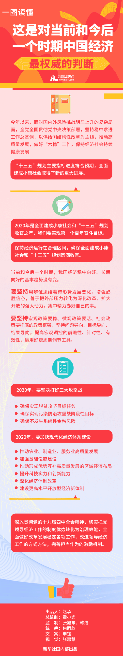 2020年是全面建成小康社會和“十三五”規(guī)劃收官之年,如何做好明年經(jīng)濟工作,確保實現(xiàn)第一個百年奮斗目標?6日召開的中央政治局會議作出安排部署傳遞重要信號。