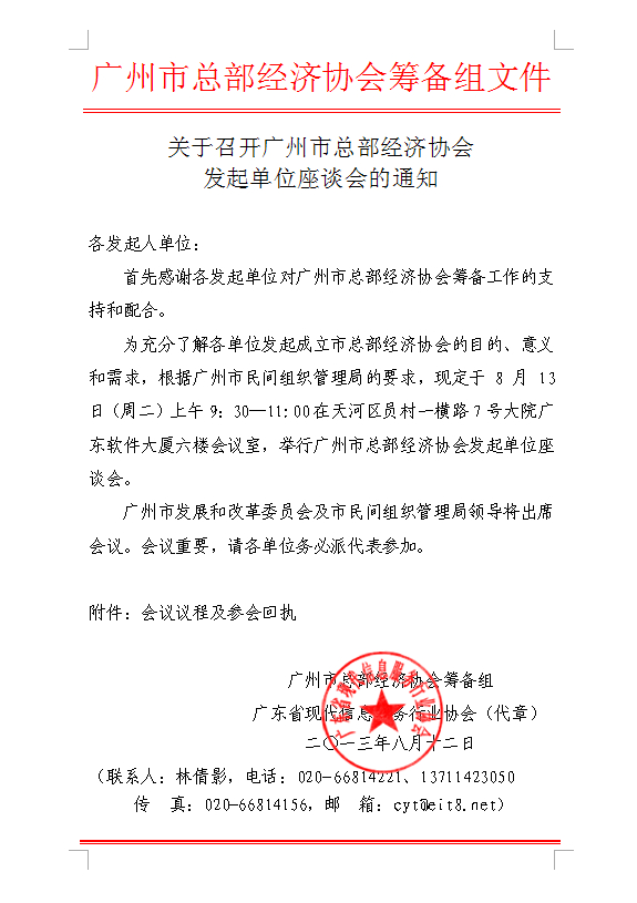 關(guān)于召開(kāi)廣州市總部經(jīng)濟(jì)協(xié)會(huì)發(fā)起單位座談會(huì)的通知