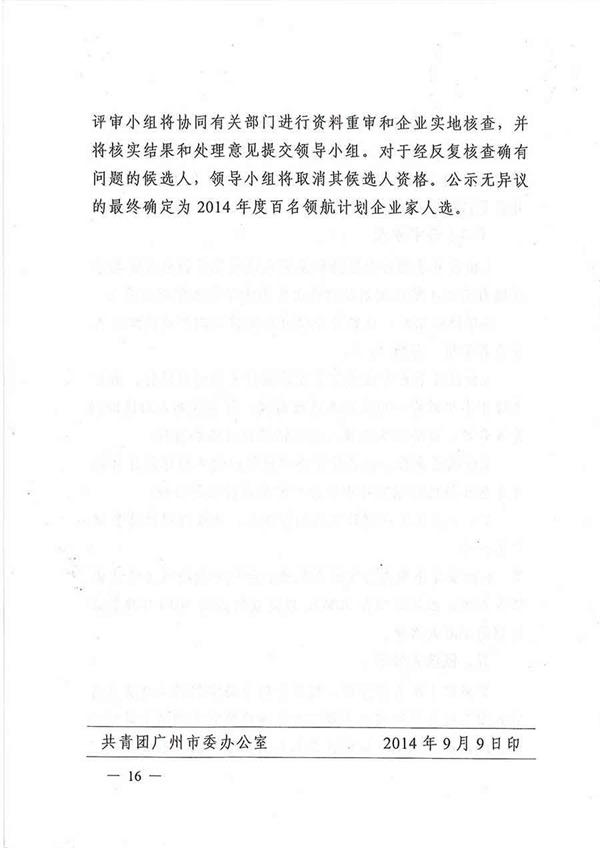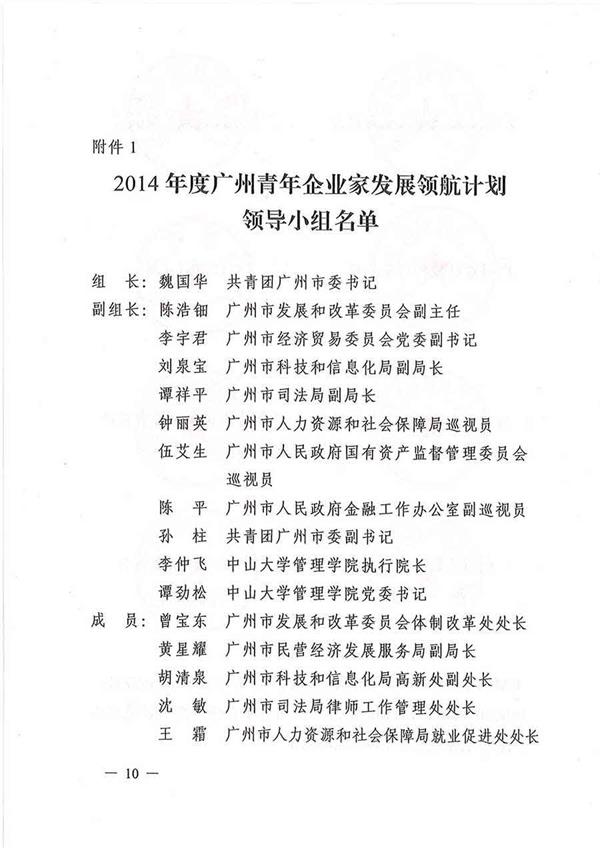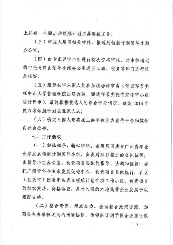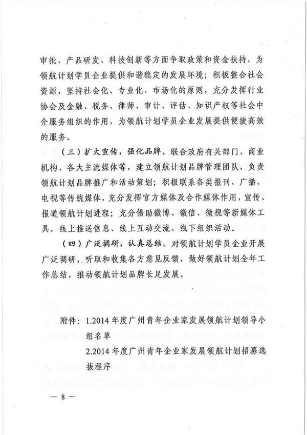 關(guān)于實(shí)施2014年度廣州青年企業(yè)家發(fā)展領(lǐng)航計(jì)劃的通知