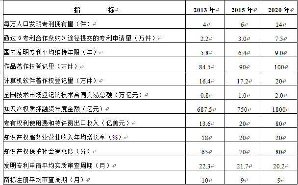 2014—2020年知識(shí)產(chǎn)權(quán)戰(zhàn)略實(shí)施工作主要預(yù)期指標(biāo)