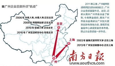 提案總結(jié)了十多年來廣州企業(yè)總部外遷的“軌跡”:2003年,在華南地區(qū)做得風(fēng)生水起的量販?zhǔn)匠泻糜侄嗤蝗恍迹瑸榕浜掀淙珖鴳?zhàn)略布局,“遷都”上海;2006年,中英人壽和中意人壽兩個(gè)外資保險(xiǎn)總部先后從廣州流失到北京,廣東省政府在當(dāng)年還專門下發(fā)了《關(guān)于加快廣東保險(xiǎn)業(yè)發(fā)展的若干意見》加以應(yīng)對;2009年,作為廣州唯一本土產(chǎn)的互聯(lián)網(wǎng)門戶名企,網(wǎng)易向全體員工發(fā)布了關(guān)于網(wǎng)站部“北遷”計(jì)劃;2010年,碩果僅存的唯一一家總部設(shè)在廣州的外資保險(xiǎn)公司,信誠人壽總部也決定遷往北京;而近兩年,作為廣州長期以來的納稅大戶,廣州寶潔也先后將研發(fā)中心布局北京、銷售中心遷往上海,在廣州只留下了生產(chǎn)基地,其中特別是其將銷售中心外遷,當(dāng)年就使廣州凈流失了約20億元左右的稅收,給“日化之都”以巨大震動。