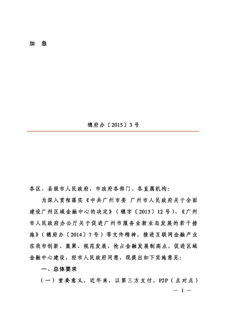 廣州市人民政府辦公廳關(guān)于推進(jìn)互聯(lián)網(wǎng)金融產(chǎn)業(yè)發(fā)展的實施意見