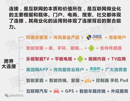 雖然“互聯(lián)網(wǎng)”一詞在當(dāng)下伴隨著鼓吹與泡沫而炙手可熱,但毋庸置疑的是,互聯(lián)網(wǎng)將成為人類下一次飛躍的橋梁和動(dòng)力毋庸置疑。今天我們以八張圖分析一下互聯(lián)網(wǎng)發(fā)展的六大趨勢(shì):連接與聚合、產(chǎn)業(yè)互聯(lián)網(wǎng)化、產(chǎn)業(yè)金融化、個(gè)性化需求、O2O、智能工業(yè)。
