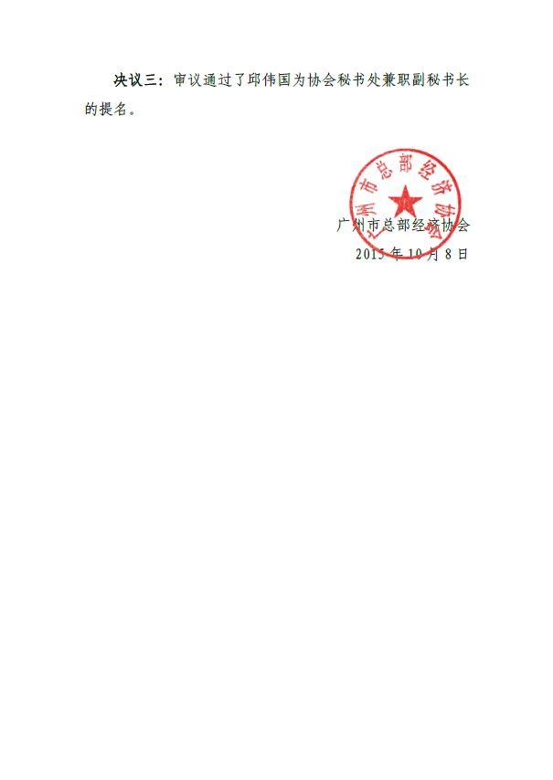 決議三:審議通過了邱偉國為協(xié)會(huì)秘書處兼職副秘書長的提名。