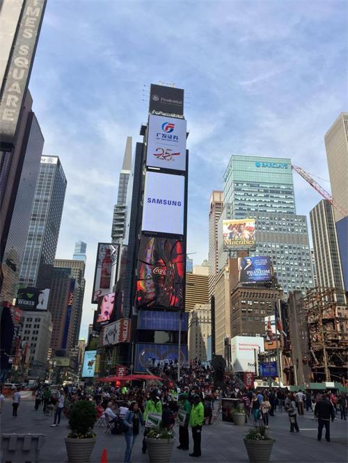 近日,美國紐約時(shí)代廣場的中國屏以每天192次的頻率滾動(dòng)播放著中國大型上市券商廣發(fā)證券25周年宣傳片。