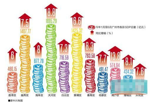 記者梳理發(fā)現(xiàn),今年上半年廣州各區(qū)的GDP總量都比去年同期有所增長(zhǎng),其中天河區(qū)GDP增長(zhǎng)總量最大,增加了127.16億元;從化區(qū)增長(zhǎng)總量最小,只有6.92億元。