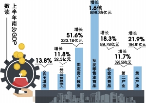 在廣州市11個(gè)區(qū)中,南沙區(qū)是上半年唯一一個(gè)地區(qū)生產(chǎn)總值保持兩位數(shù)增長(zhǎng)的區(qū),增速達(dá)13.8%,分別比全市和全省的平均增速高出5.8個(gè)百分點(diǎn)和6個(gè)百分點(diǎn)。