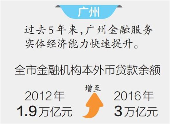 過(guò)去5年來(lái),廣州金融服務(wù)實(shí)體經(jīng)濟(jì)能力得以快速提升。金融服務(wù)實(shí)體經(jīng)濟(jì)呈現(xiàn)出融資總量擴(kuò)大、結(jié)構(gòu)優(yōu)化、服務(wù)良好的“特質(zhì)”,全市金融機(jī)構(gòu)本外幣貸款余額從2012年的1.9萬(wàn)億元增至2016年的3萬(wàn)億元。
