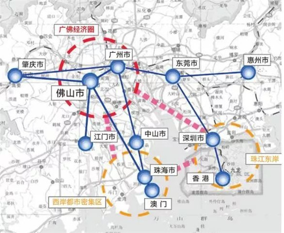 一環(huán)聯(lián)系:依托珠三角環(huán)形高速、廣佛環(huán)線等高快速路和鐵路環(huán)狀通道,以廣州空港經(jīng)濟區(qū)、中新廣州知識城、南沙新區(qū)、佛山的大良—容桂副中心、獅山副中心等為重要節(jié)點,構成圍繞廣佛核心區(qū)的城鎮(zhèn)發(fā)展環(huán),努力建成新的經(jīng)濟增長極。
