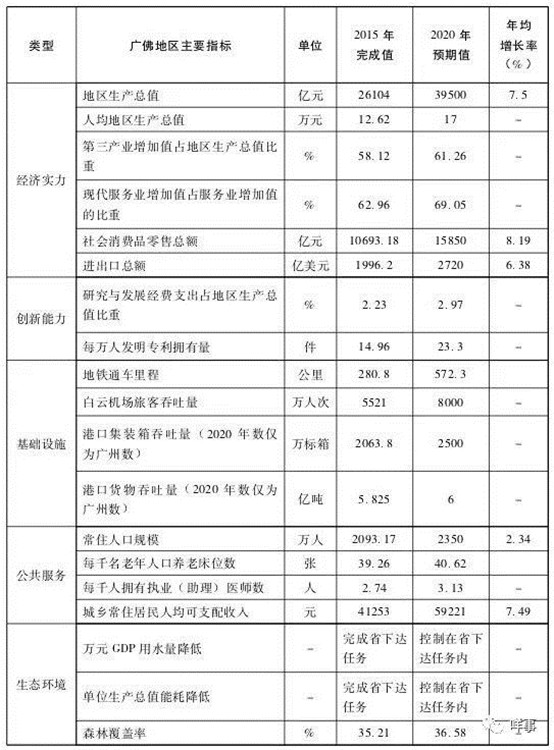 規(guī)劃的目標是,到2020年,廣佛同城化發(fā)展實現(xiàn)新跨越,小康社會全面建成。“十三五”時期,廣佛地區(qū)生產(chǎn)總值年均增長7.5%以上,2020年達到3.9萬億元以上;人均地區(qū)生產(chǎn)總值2020年達到17萬元。