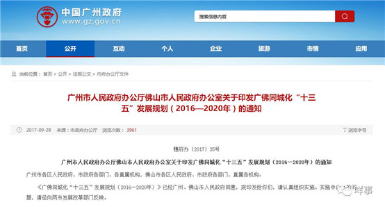 廣佛同城化未來五年發(fā)展的綱領性文件