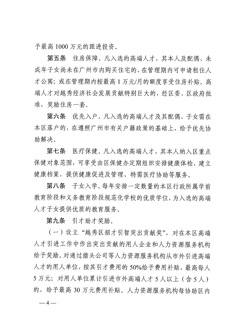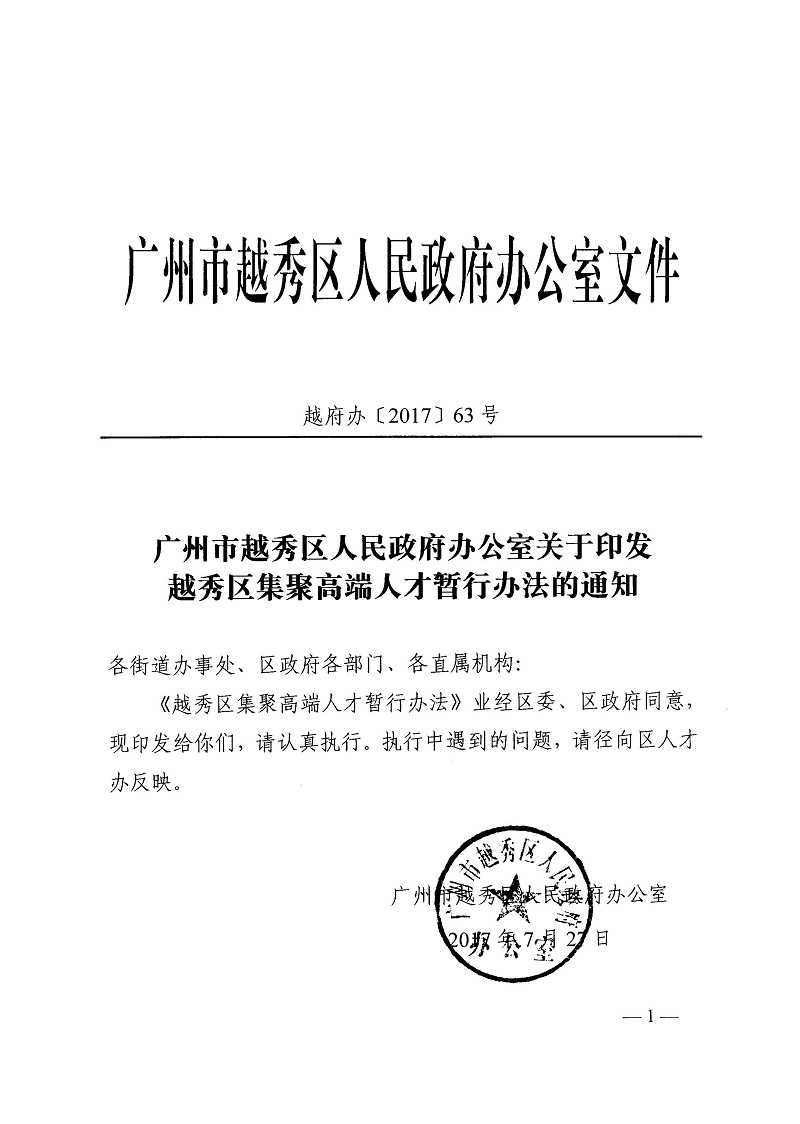廣州市越秀區(qū)人民政府辦公室關(guān)于印發(fā)越秀區(qū)集聚高端人才暫行辦法的通知