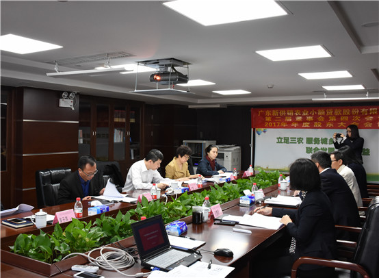 3月20日, 廣東新供銷農(nóng)業(yè)小額貸款股份有限公司(下稱“新供銷小貸公司”)第二屆董事會第四次會議暨2017年年度股東大會圓滿召開。全體股東代表出席了會議,監(jiān)事會、董事會成員等列席了會議。