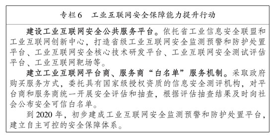 1.提升工業(yè)互聯(lián)網(wǎng)安全服務(wù)能力。建立工業(yè)互聯(lián)網(wǎng)平臺商、服務(wù)商“白名單”服務(wù)機(jī)制,對工業(yè)企業(yè)“上云用云”服務(wù)的設(shè)備安全、控制安全、網(wǎng)絡(luò)安全、平臺安全、數(shù)據(jù)安全等開展評估和抽查。充分發(fā)揮國家專業(yè)機(jī)構(gòu)和社會力量作用,建設(shè)廣東省工業(yè)信息安全聯(lián)盟,打造省級工業(yè)互聯(lián)網(wǎng)安全公共服務(wù)平臺,著力提升隱患排查、攻擊發(fā)現(xiàn)、應(yīng)急處置和攻擊溯源能力。(省經(jīng)濟(jì)和信息化委、通信管理局、省委網(wǎng)信辦,各地級以上市人民政府)