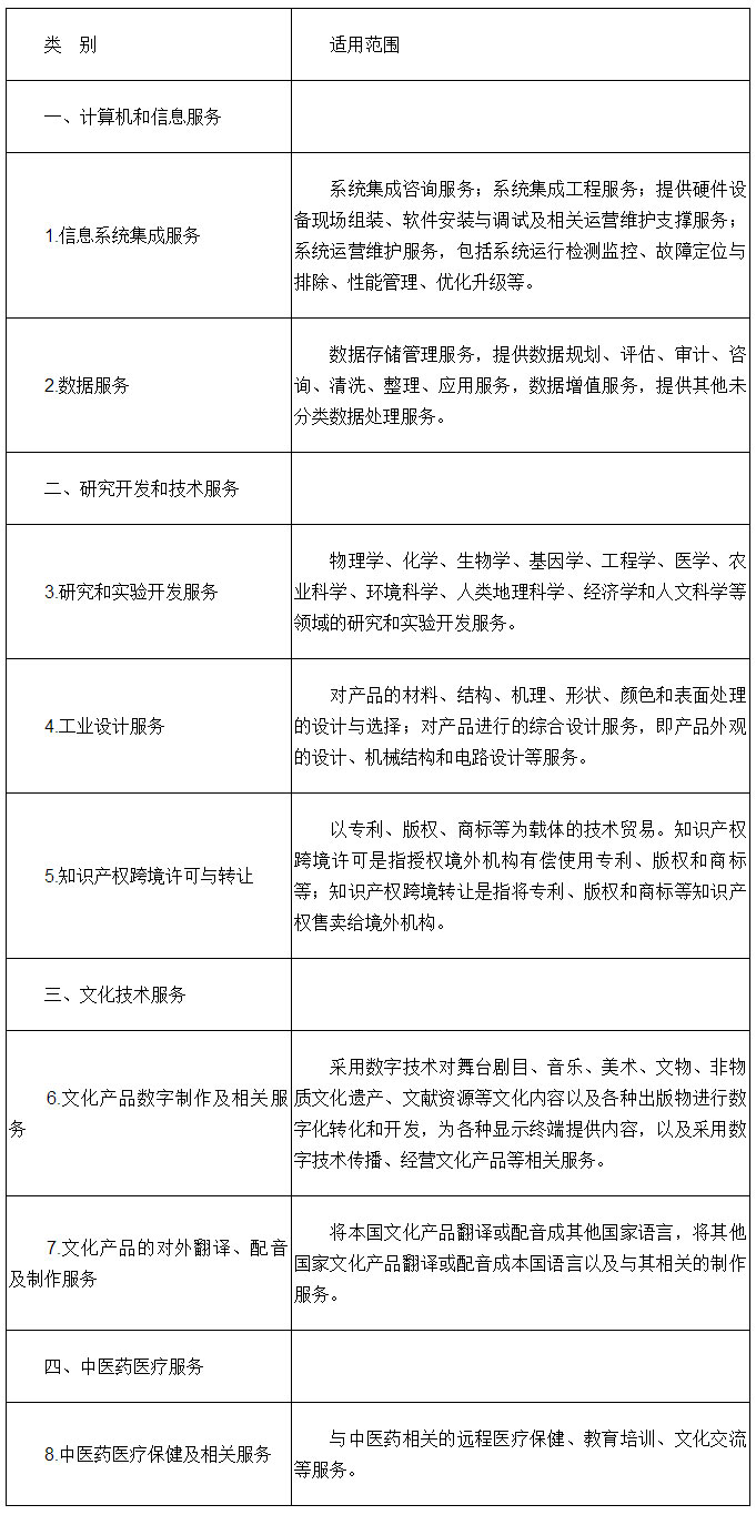 技術(shù)先進(jìn)型服務(wù)業(yè)務(wù)領(lǐng)域范圍(服務(wù)貿(mào)易類)