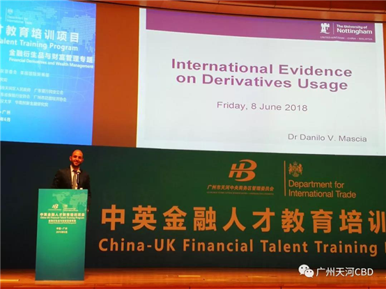 6月8日,由廣州市天河中央商務區(qū)管委會和英國國際貿易部聯(lián)合主辦,廣州市總部經濟協(xié)會支持的“中英金融人才教育培訓——金融衍生品與財富管理專題”在廣州珠江城國際會議中心舉行。