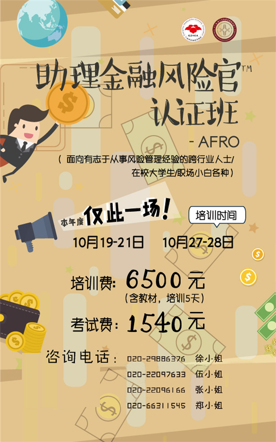 助理國(guó)際金融風(fēng)險(xiǎn)官TM(AFRO) 培訓(xùn)費(fèi)6500元,考試費(fèi)1540元