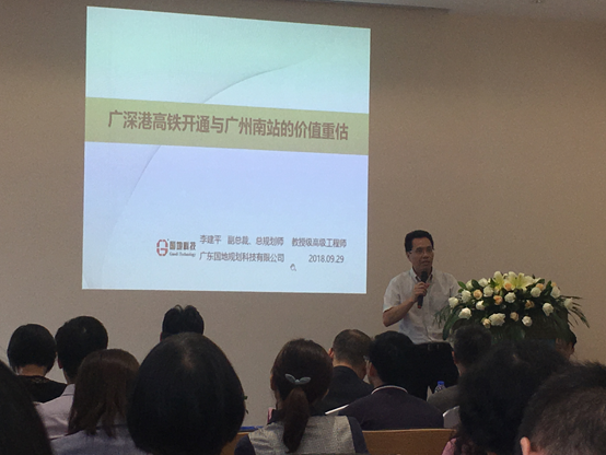 在主持人開場后是精彩的主題分享環(huán)節(jié),李建平總規(guī)劃師作“廣深港高鐵開通與廣州南站的價值重估”主題演講,從廣州南站發(fā)展建設回顧、廣州南站的價值、廣深港高鐵開通將在哪些發(fā)面提升南站的價值、以及應對價值提升,南站的發(fā)展如何應對等方面做了相關分析及數據評估。