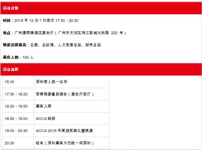 ACCA 2018年度頒獎典禮暨晚宴即將在12月7日(周五)晚于廣州康萊德酒店舉辦。受ACCA邀請,協(xié)會獲贈部分嘉賓席位,歡迎各副會長單位踴躍贊助本次活動,為我們的晚宴捐贈抽獎禮品。