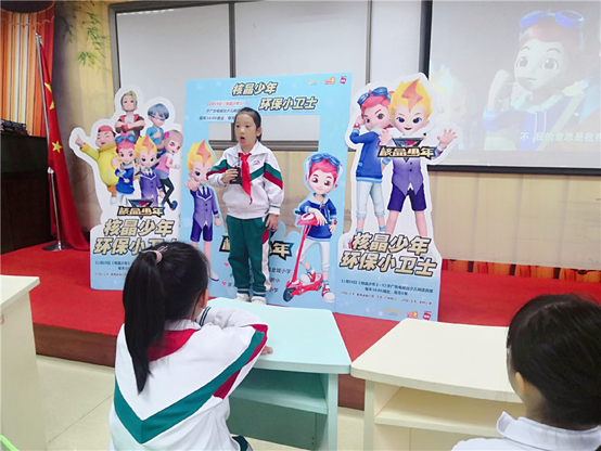 為進一步提升青少年環(huán)境保護意識,大力弘揚生態(tài)文明理念,詠聲動漫《核晶少年》攜手廣東少兒頻道近日組織舉行了“核晶少年環(huán)保小衛(wèi)士入校園”活動。分別走進了番禺東城小學、廣外附屬小學和岑村小學進行環(huán)保宣傳教育。
