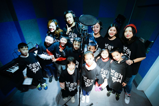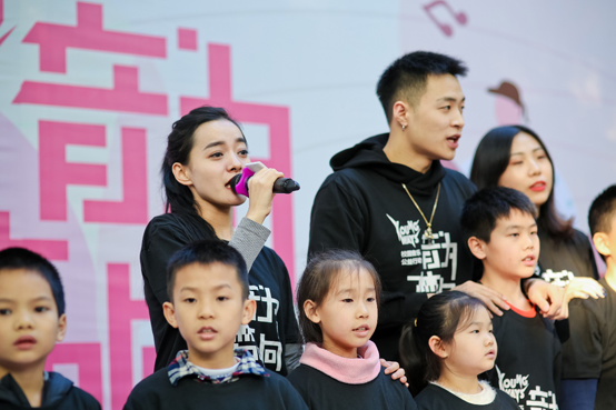 (大學(xué)生和流動兒童共同歡唱“音為夢響”主題曲)