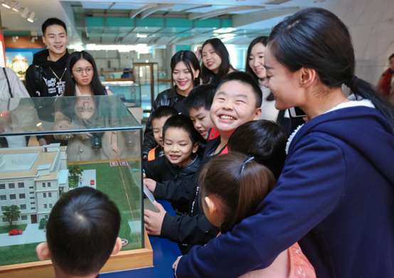 (大學(xué)生和孩子們一起參觀“廣東聲音博物館”)