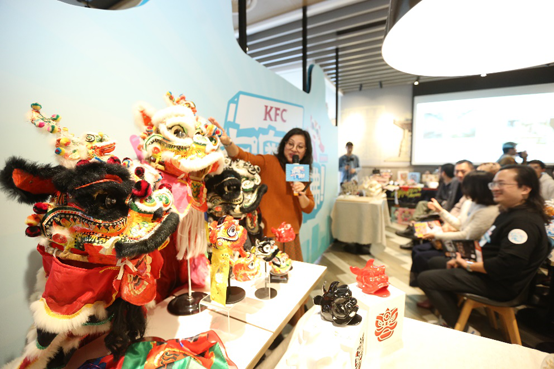 “將佛山創(chuàng)新的非遺文化,在富有廣府韻味的肯德基里展現(xiàn),這樣的文化穿越特別有意思。這次我們和肯德基一起把準(zhǔn)年輕人的‘脈’,希望用優(yōu)秀而富有創(chuàng)意的傳統(tǒng)文化,擁抱年輕人。”歐琦輝說。在她看來,在廣佛兩地,傳統(tǒng)從未遠(yuǎn)離人們的生活,當(dāng)傳統(tǒng)越玩越“潮”,多元文化的交融之下,無論是新廣東人還是“老廣”,都擁有越來越強(qiáng)烈的文化自豪感,為粵文化“打call”。歐琦輝說,“傳統(tǒng)文化也可以很時(shí)尚”,于是她獨(dú)具匠心創(chuàng)作出招財(cái)獅圍巾、獅頭擺飾、獅紋樣式扇……希望通過文創(chuàng)產(chǎn)品,讓更多的人了解獅頭文化。