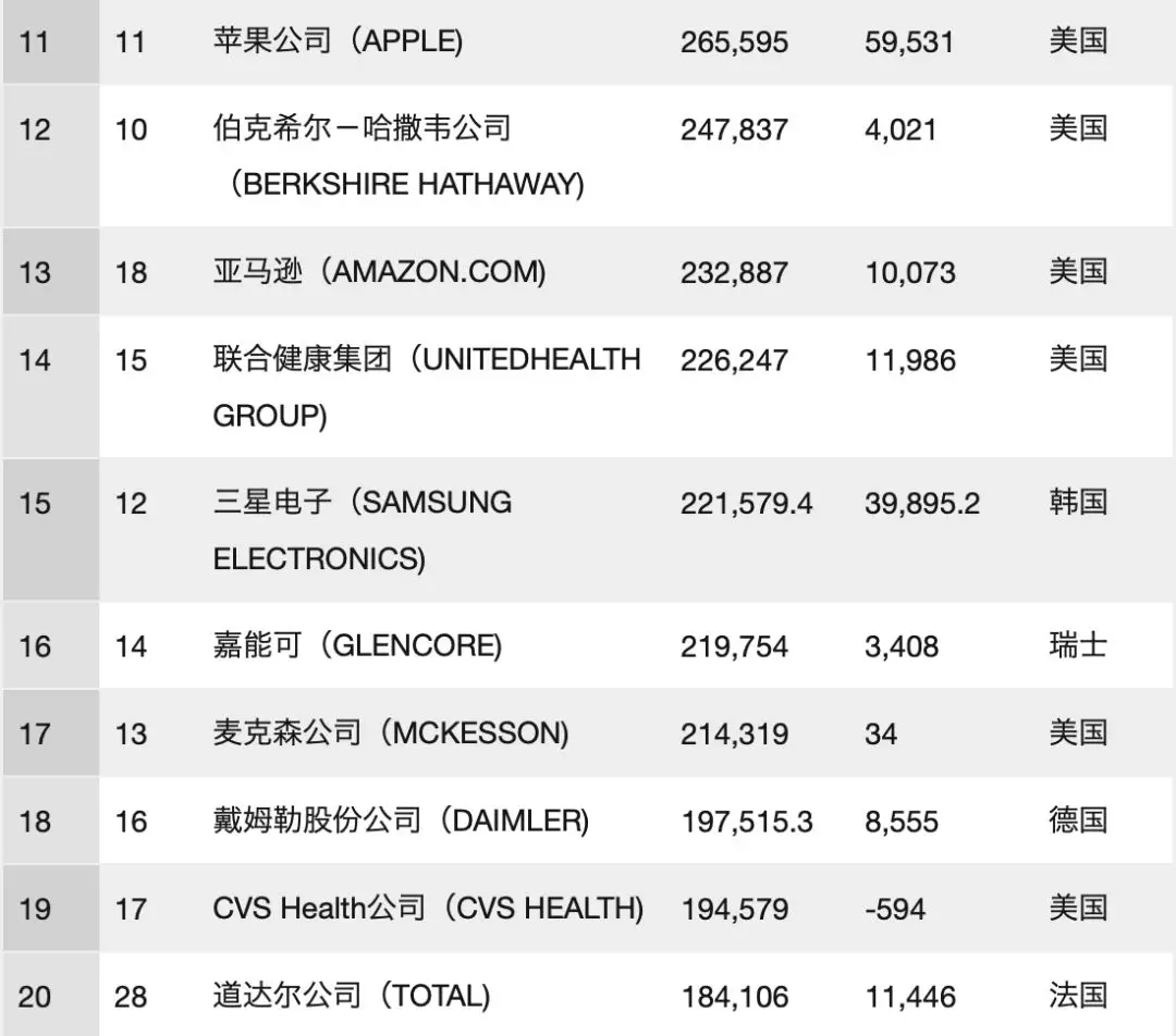 世界500強前20名企業(yè)(圖片來源:財富中文網(wǎng))