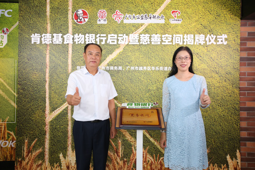 (廣州市公益慈善聯(lián)合會郭留記會長與百勝餐飲(廣東)有限公司總經(jīng)理鄭穎燕共同為“慈善空間”揭牌)